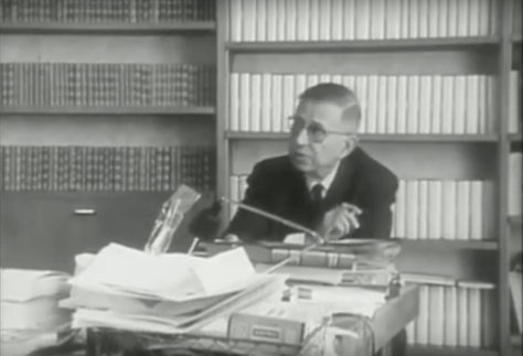 Similarly, the conversation Sartre has with the interviewer near the beginning of the clip is candid and different to anything people in France had heard him speak on before. Sartre’s contribution to radio, La tribune des temps modernes, had an anti-Gaullist, polemic agenda; however, no one could take offence at Sartre speaking candidly about where his family lives (Moody 2014, p.247). There is a charming sentimentality to the writer matter-of-factly pointing out his mother’s home, so near to his, and Gobeil makes sure to highlight this by pointing out that all of his loved ones are in Montparnasse. He also indicates where de Beauvoir lives (the couple famously never lived together) using his nickname for her – “Castor”.