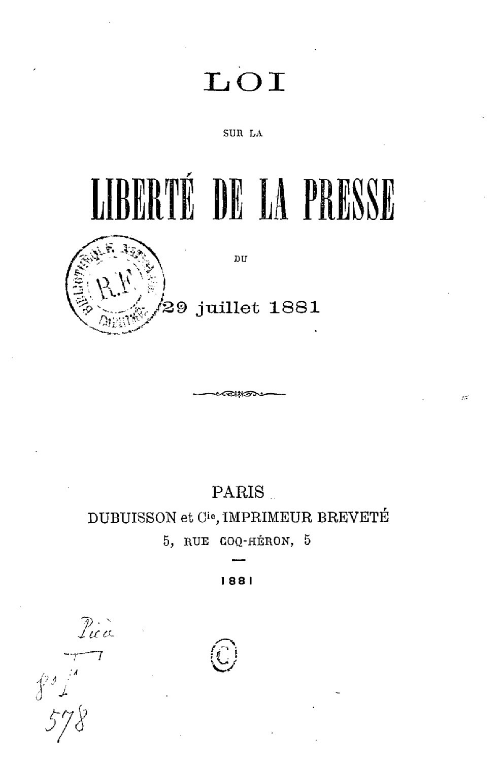 Digithèque, Grandes lois de la République (2005) <https://mjp.univ-perp.fr/france/1881presse.htm> [accessed 11 November 2020].