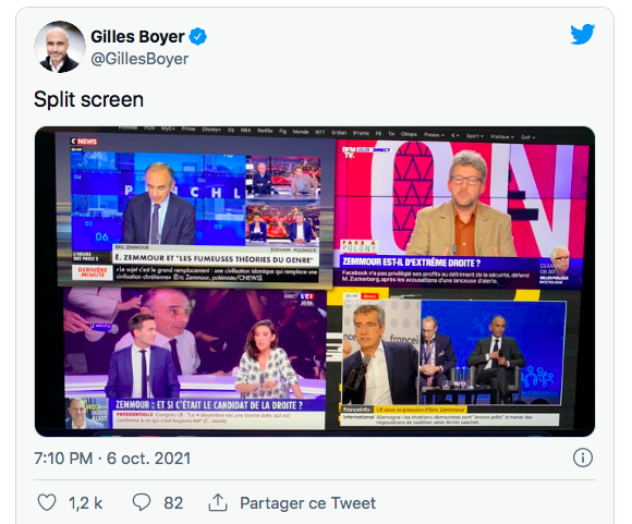 Fig. 2: Boyer, G. [@GillesBoyer]. (2021) ‘Split screen’, Twitter , 6 October. Available at: https://twitter.com/GillesBoyer/status/1445813815547887621. [Accessed 2 November 2021].